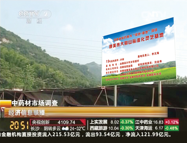 中央電視臺財經(jīng)頻道于2014年8月8日晚9點左右,經(jīng)濟信息聯(lián)播和8月9日早上第一時間,以較長時段報道了康美來沙河靈芝基地以及對基地負(fù)責(zé)人李文海的采訪。