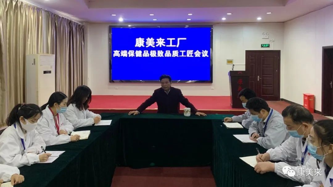 11月30日下午,康美來工廠高端保健品極致品質工匠會議在金寨公司會議室召開。