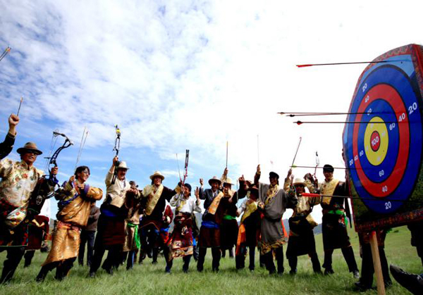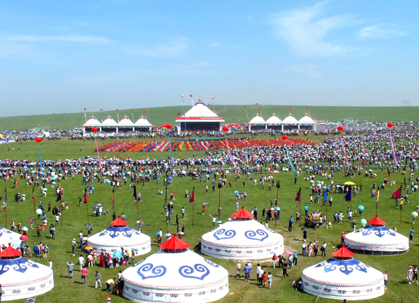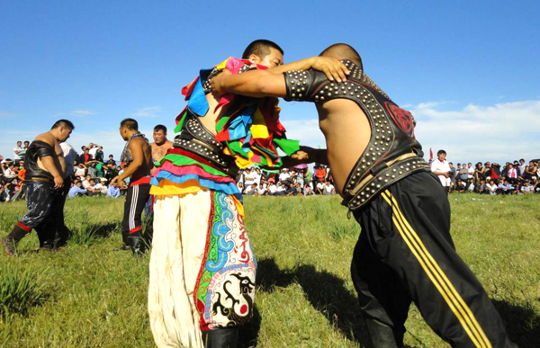 在希拉穆仁草原,每年都要舉行盛大的草原那達慕活動,其中的賽馬、摔跤和射箭三項競技是蒙古族“男兒三藝”。
