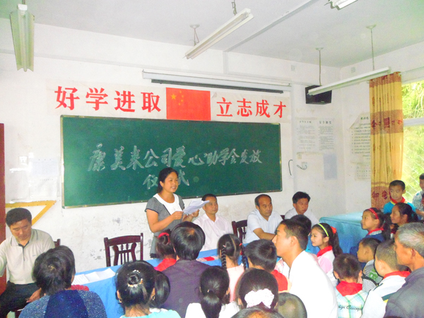 活動儀式上,康美來科技有限公司余春富董事長積極發動參加活動的公司旗下經銷商,參與結對幫扶來自三所小學的貧困學生,鼓勵各位老總與貧困學生一對一,結成對子,為孩子們的成長提供有力的支持。并對多年來公司在我縣發展得到了各級政府及群眾的大力支持作感謝發言。師生代表分別發言對康美來公司、余總以及各位愛心老總們的愛心之舉表示感謝,并承諾今后的教學、學習過程中,全力以赴,以康美來公司上下無私奉獻精神為榜樣,回饋社會。