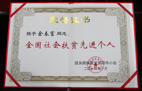 縣扶貧辦積極推崇“康美來精神”。去年全國扶貧日舉行“全國社會扶貧先進個人”推薦活動中,康美來科技有限公司董事長余春富榮獲“全國社會扶貧先進個人”光榮稱號,活動儀式上,縣扶貧辦社會扶貧股股長汪維清為余春富頒發榮譽證書,對康美來公司的凡人善舉行為表示感謝,并希望余春富董事長帶領各位經銷商老總們,能始終如一地開展捐資助學活動。